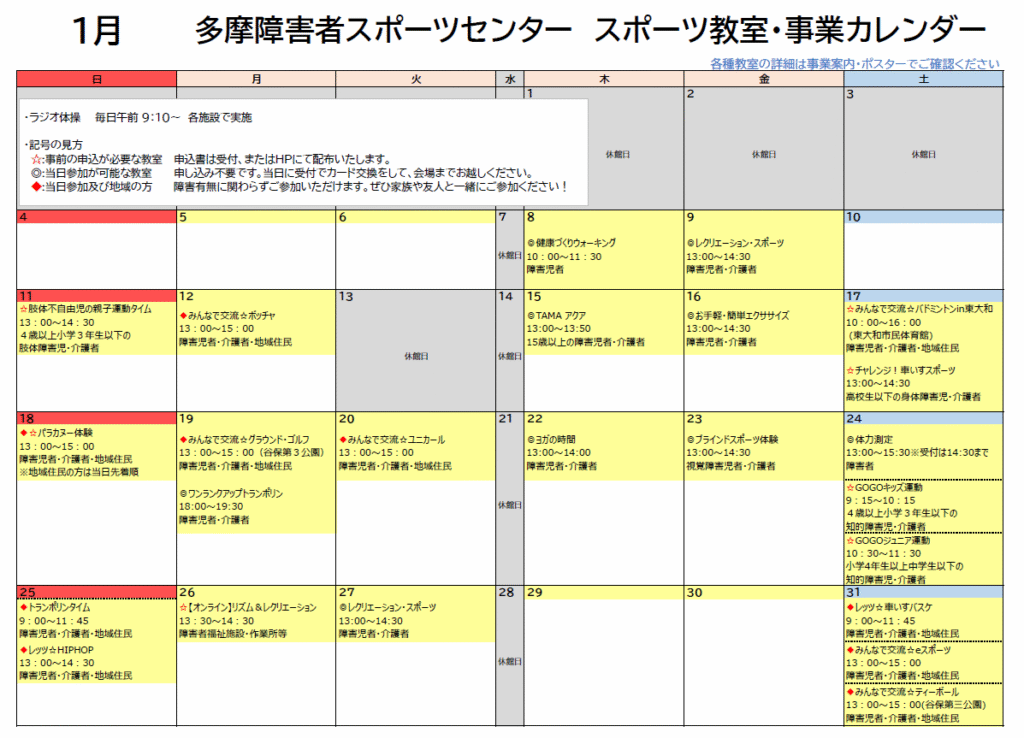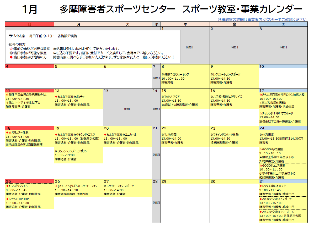 開館日、休館日を表示しています(休館日は赤地に白抜き文字)。