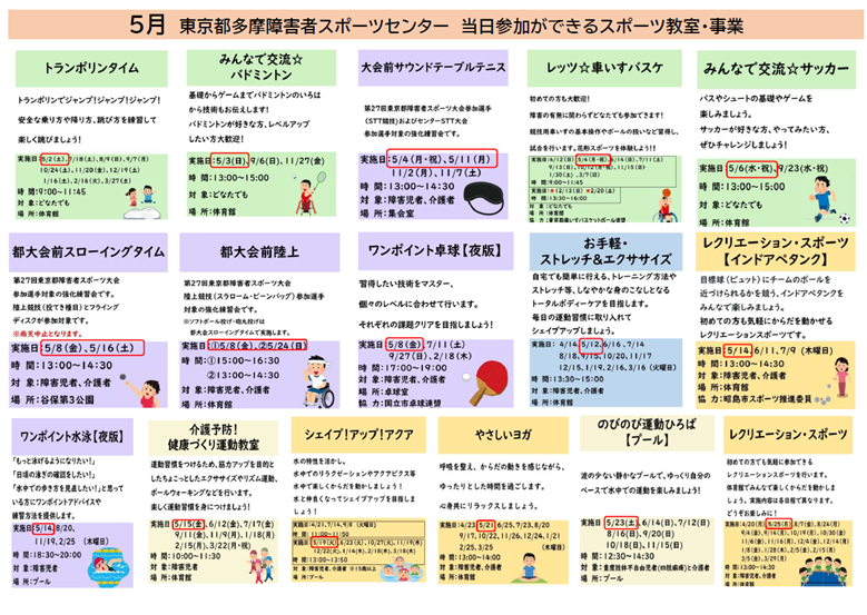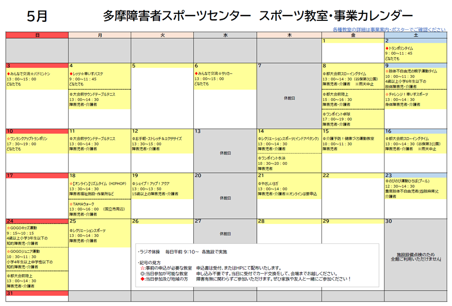 5月スポーツ教室カレンダー