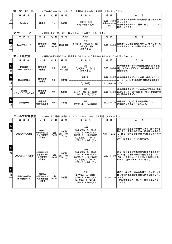| 日程 | スポーツ指導員・ボランティア向け事業のご案内 |