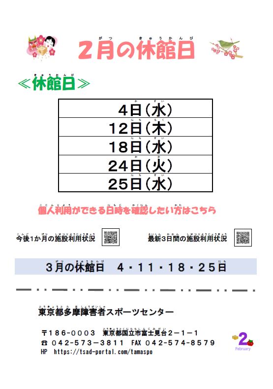 開館日、休館日を表示しています(休館日は赤地に白抜き文字)。