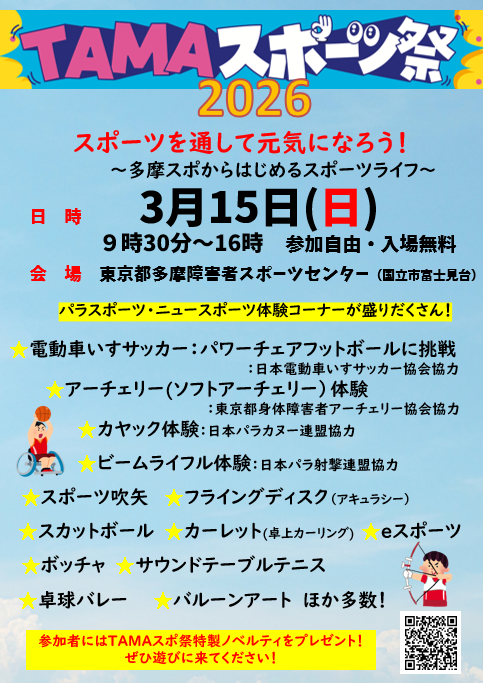 今年も TAMA スポーツ祭の季節がやってきました! 今回は「スポーツを通して元気になろう!」をスローガンに、様々なパラスポーツ・ニュースポーツを体験いただけます。