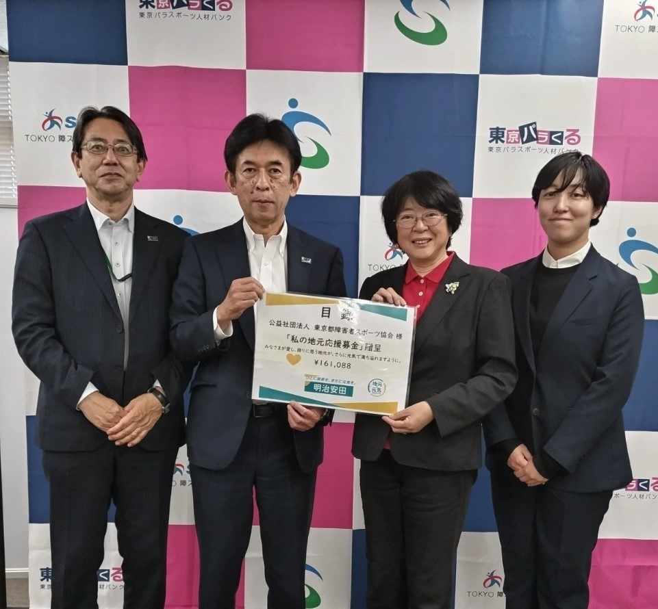 明治安田生命保険相互会社様より、「私の地元応援募金」の一部をご寄付として頂戴いたしました。