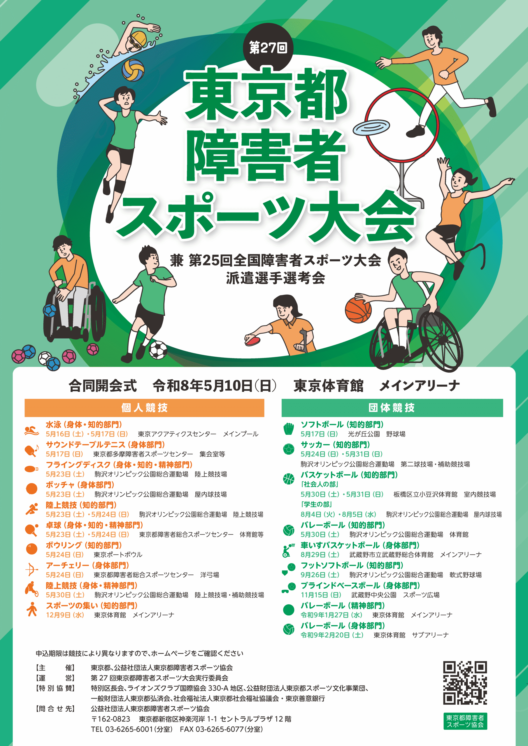 | 申込窓口 | 公益社団法人東京都障害者スポーツ協会 〒162-0823 新宿区神楽河岸1-1セントラルプラザ12階 TEL 03-6265-6001(分室) |